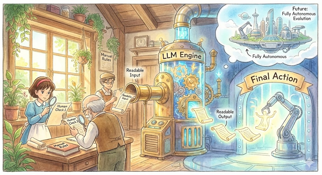 - Transition to Autonomy: As the AI learns from these human corrections, the need for manual checks will gradually decrease. Eventually, the system will evolve into the “Fully Autonomous Evolution” shown in the illustration—a state where the AI operates independently with peak efficiency.
