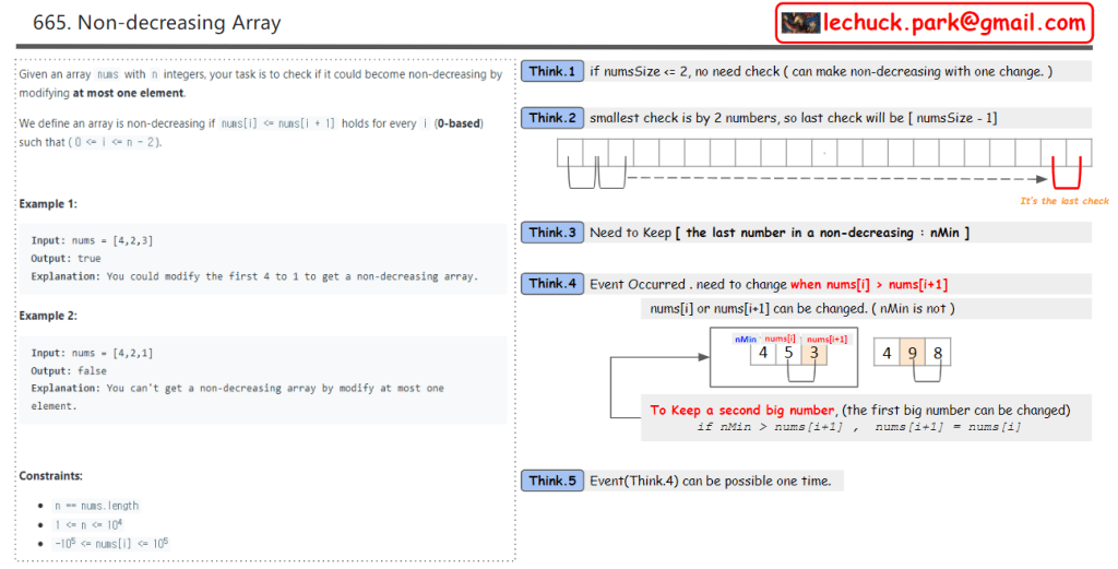 Leetcode 665. Non-decreasing Array Posted on 2022-06-292022-06-29 by lechuck park Share this: Click to share on X (Opens in new window) X Click to share on Facebook (Opens in new window) Facebook Like Loading... Published by lechuck park I love to learn computer tech and help people by the digital. View all posts by lechuck park