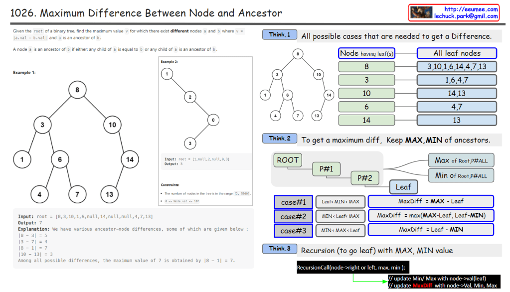 Leetcode 1026. Maximum Difference Between Node and Ancestor Posted on 2023-01-062023-01-07 by lechuck park Share this: Click to share on X (Opens in new window) X Click to share on Facebook (Opens in new window) Facebook Like Loading... Published by lechuck park I love to learn computer tech and help people by the digital. View all posts by lechuck park
