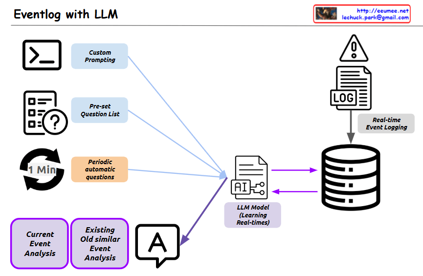 This system collects and updates unstructured text-based event logs in real-time, which are then learned by the LLM. Through user-input questions, predefined question lists, or periodically auto-generated questions, the system analyzes current events and compares them with similar past cases to provide comprehensive analytical results.