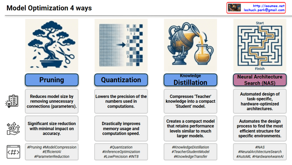 #AI #DeepLearning #ModelOptimization #Pruning #Quantization #KnowledgeDistillation #NAS #EdgeAI #EfficientAI #MachineLearning