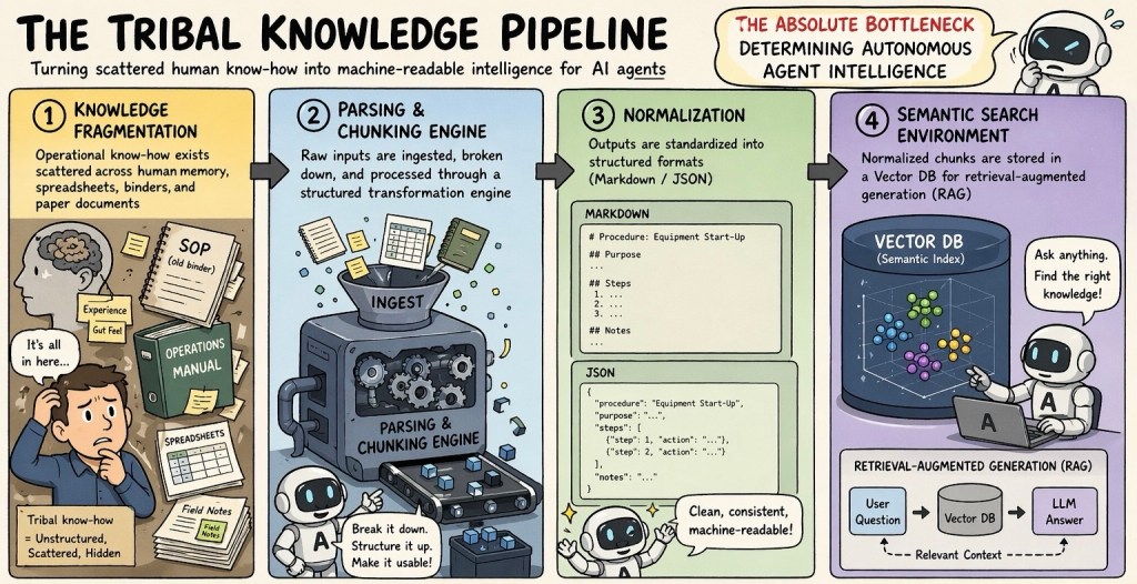 The absolute bottleneck for autonomous AI intelligence is the difficult process of transforming scattered, unstructured human knowledge into clean, machine-readable data.
