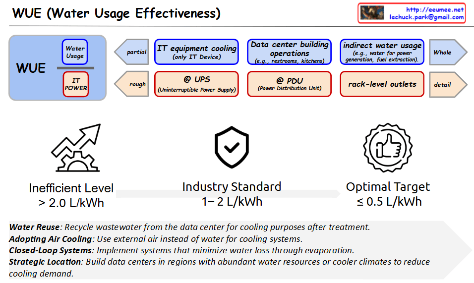 From Claude with some prompting The image provides information about Water Usage Effectiveness (WUE), which is a metric used to measure the water efficiency of data centers. Here’s a breakdown of the key points: