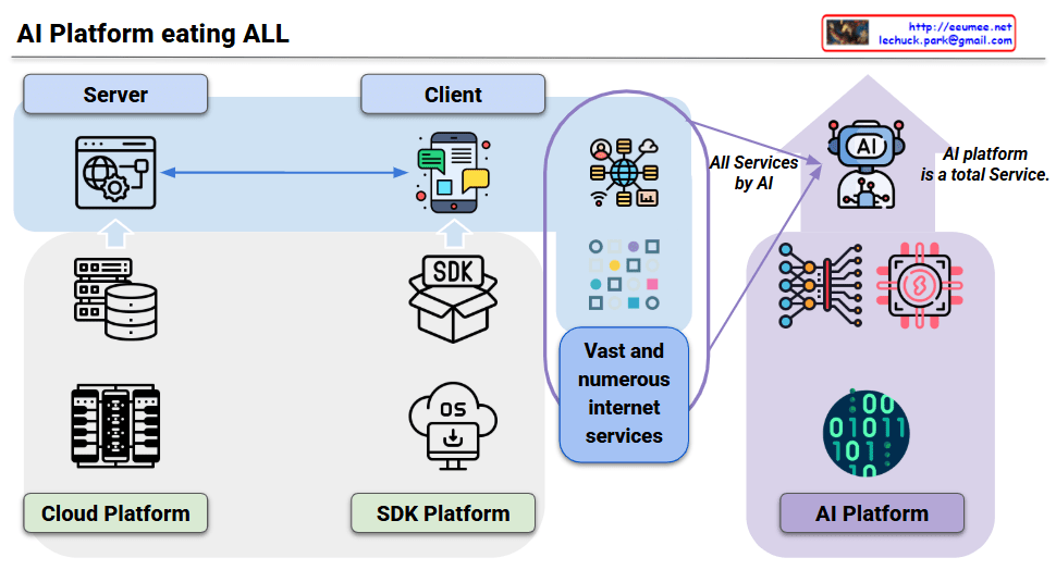 • “All Services by AI”: AI directly provides the diverse services that developers previously created
