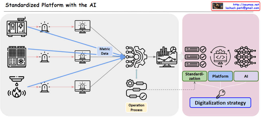 This image illustrates a “Standardized Platform with the AI”. Here’s a breakdown of the key components and processes: