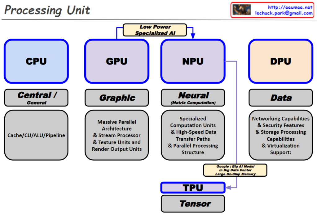 NPU and TPU are differentiated by their low power, specialized AI purpose.