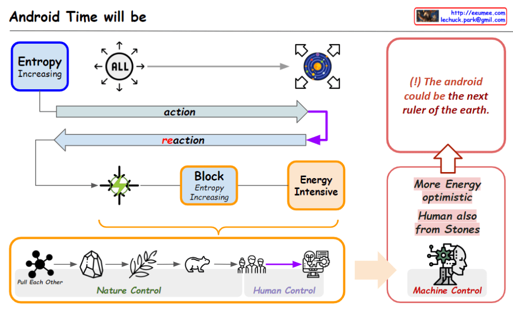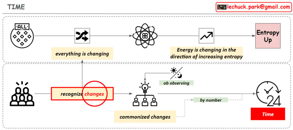 This image explains entropy growth from two perspectives: human and particle viewpoints.