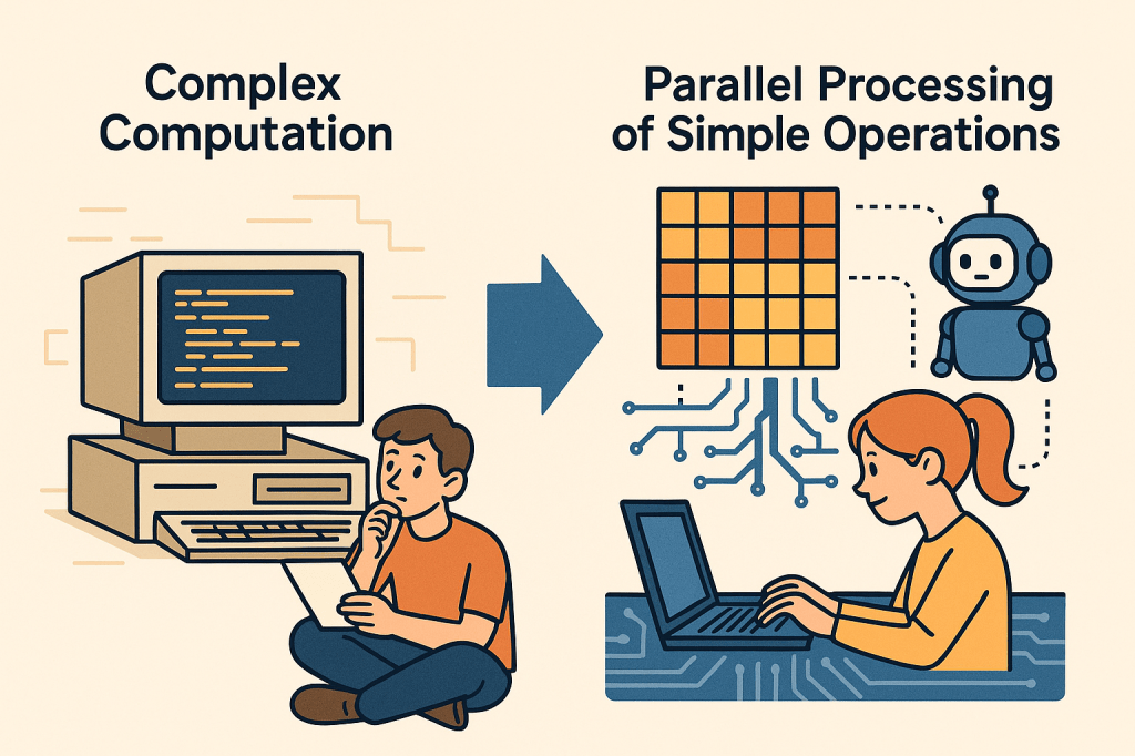 Computing is shifting from complex logic to massive parallel processing of simple matrix operations, especially in AI. As computation becomes faster, memory—its speed, structure, and reliability—becomes the new bottleneck and the most critical resource.
