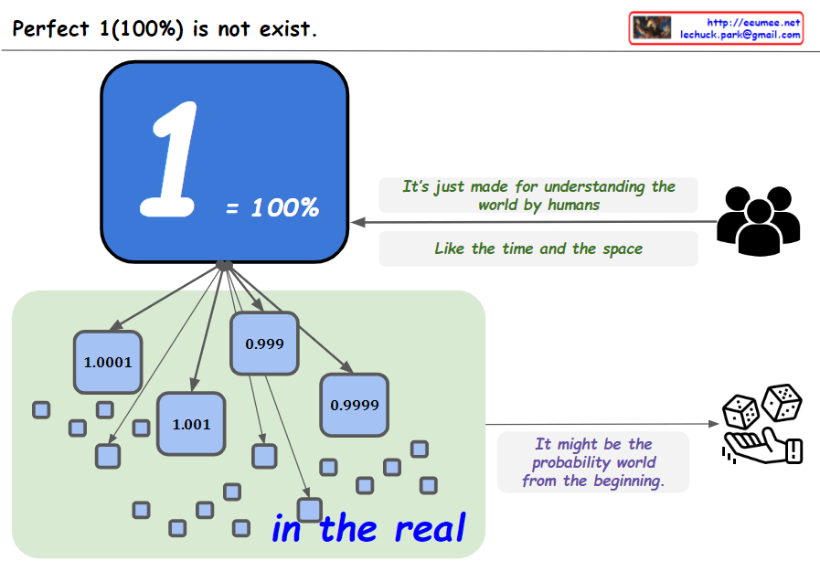 The image you provided consists of 10 squares with numbers from 1 to 0.9999, along with the phrase “Perfect 1 (100%) does not exist.”